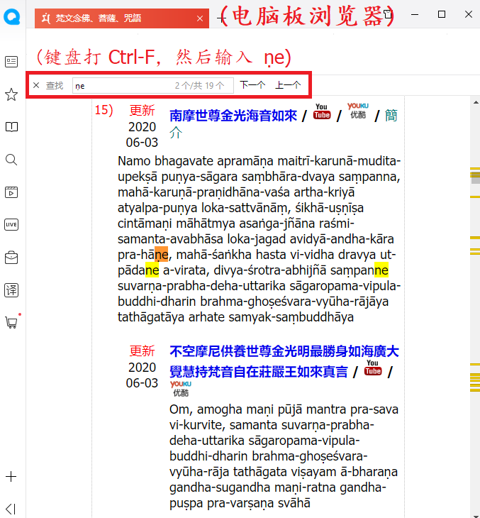 有個方法去搜尋梵音關鍵字母。如果你有在蔡老師的網站學習咒語的