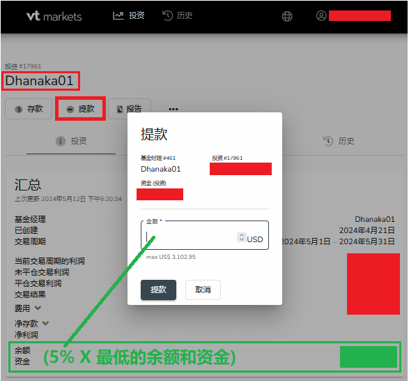 较低的余额和资金,这是因为如果您的出金额太高,这将影响整体 PAMM 主户保证金 (Margin)